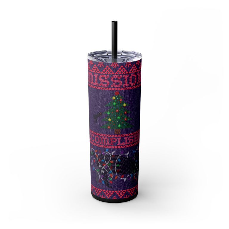 Mission Accomplished Cat Skinny Tumbler with Straw THS031124-013